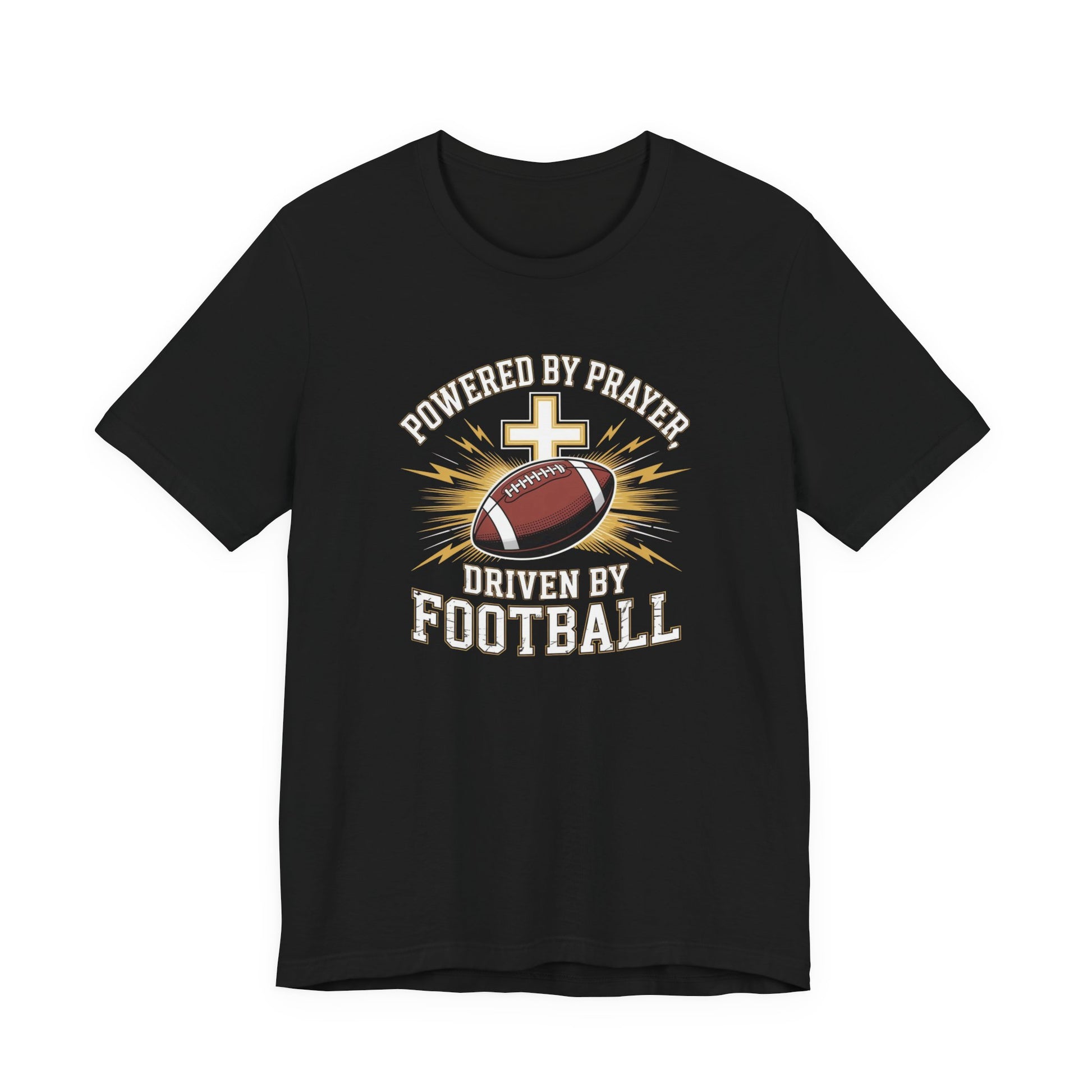 Faith and Football Unisex Tee, Powered by Prayer Shirt, Sports Fan Gift, Inspirational Tee, Team Spirit Apparel